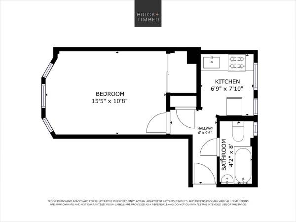 - Spacious studio with generous closet space.