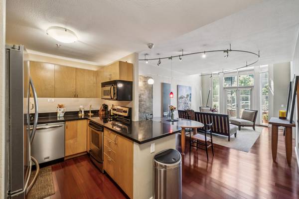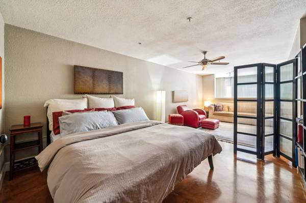 Residence 114 offers a rare, fully furnished, two-level, 2-bedroom, 2-bath home featuring a versatile layout, with the second bedroom thoughtfully set up as a home office. The open floor plan showcases wood floors, expansive floor-to-ceiling windows, and direct access to a private walkout patio. The modern kitchen is equipped with sleek appliances and contemporary cabinetry, seamlessly flowing into the living and dining areas. Upstairs, the spacious primary suite boasts an en suite bath, a large walk-in closet, and a brand-new washer and dryer, adding everyday convenience. All utilities are included.