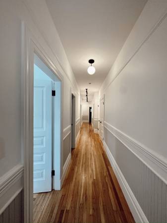 This is a beautiful, fully renovated Victorian flat in the heart of NOPA (on Baker Street) with upgraded appliances, new lighting, refinished hardwood floors, and modern kitchen and bathrooms. This spacious flat has a sunny living room, 2 bedrooms, and plenty of other space for home offices and entertainment. The flat also includes great closet space and a large utility room with private washer/dryer and storage space. There is also a sunny back yard shared by the 3 units.