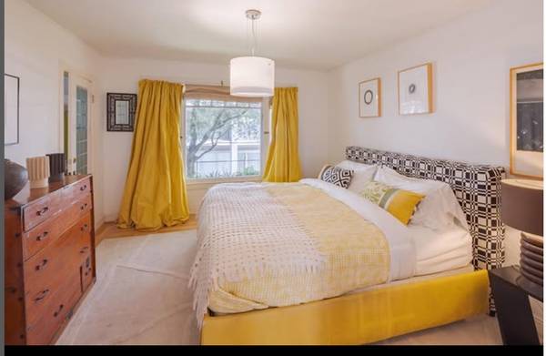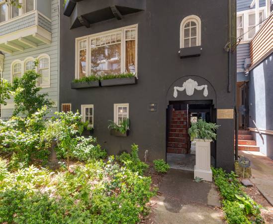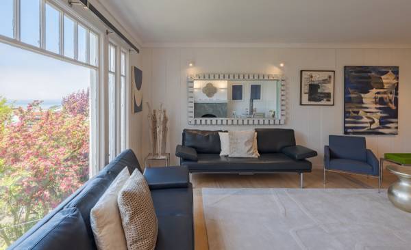 This is a very large colorful, view, one bedroom one bathroom fully furnished apartment/flat (full floor) on the very top of fashionable Nob Hill on a non-vehicular lane with mature trees and lovely gardens and fruit trees. The living room looks out over the Golden Gate Bridge -just a spectacular view. The kitchen There is a great view out over the Golden Gate Bridge from the living room windows. The bedroom has a really comfy eastern king-sized bed. There is amazing original artwork throughout the apartment. and acrylic sculptures by world famous artist Vasa Mihich. There is a brand-new washer and dryer in the unit. There is also a roof deck with panoramic views of the SF Bay. The apartment is very quiet and is surrounded by mature trees so there is a lot of green everywhere. Yet you are only a 10-minute walk from Union Square, the Financial District and Fisherman's Wharf in the opposite direction. Nob Hill on the North side of California St is a fashionable neighborhood restaurant all around and a gourmet food market called Le Beau with organic products on the same block. The property is available from December 15, 2025. There is a 24/7 public parking garage minutes from the property. You can call Patricia the owner on show contact info