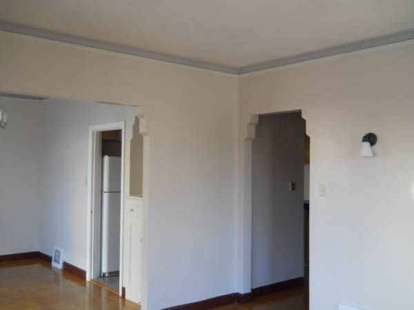 Lower unfurnished immaculate flat of a duplex corner building with 1,000 sq. ft living area