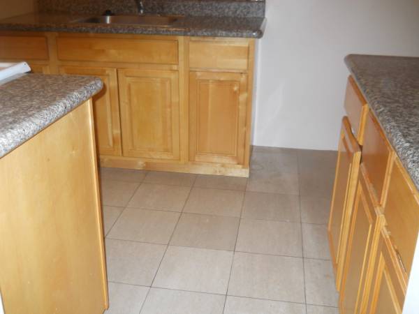Remodeled kitchen with granite counter tops, marble tile floor, all maple cabinets, stainless steel sink, garbage disposal, gas