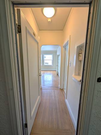 Additional highlights include new paint throughout, hardwood floors, an archway, high ceilings, and elevator access. Water and garbage services are included in the rent. Public transportation is conveniently located right in front of the building, and nearby attractions include Golden Gate Park, Lands End, Balboa Street merchants, Safeway, and Walgreens.