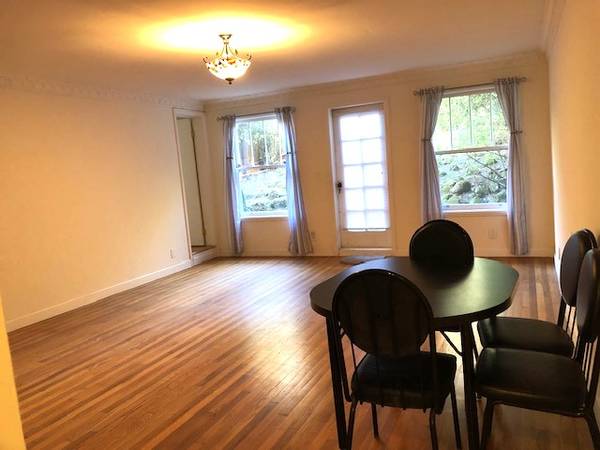 This beautiful ( appx. 1,000 sq. ft.) 2-bedroom garden apartment has a large living room with wood burning fireplace and a nice garden for relaxation. It is charming and spacious !!! The well-designed modern kitchen features granite countertop, refrigerator, and all essential amenities for your cooking needs.