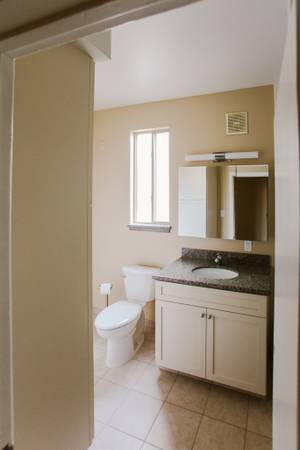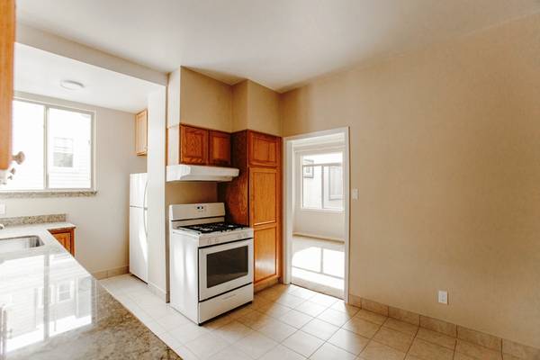 The unit is approximately 1000 sq. ft. and boasts a fantastic layout. Two good-sized bedrooms with large mirrored closets & some built-in drawers for additional storage are located towards the front of the unit. The primary bedroom has partial views of Pier 39 & Alcatraz! One large remodeled bathroom which features a shower over the tub with glass enclosure, tiled floors, vanity with granite counter top, newer light fixture and fan & large linen closet separates the bedrooms & living room. A spacious living room is located towards the rear of the flat & includes a third large closet. The fully renovated eat-in kitchen is adjacent to the living room & features newer appliances (gas range oven, refrigerator with ice maker), tons of newer cabinetry, pantry, granite counter tops, newer tile flooring and a large stainless sink. Completing the flat is a private laundry room with full size washer/dryer and plenty of storage cabinetry above.