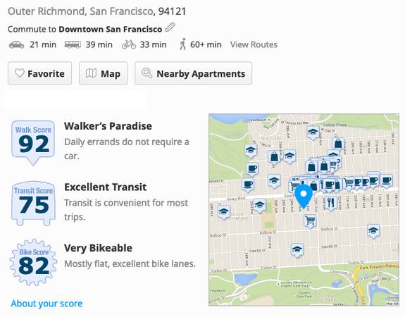 The apartment is located in a terrific residential Richmond neighborhood (Anza x 26th Avenue) with close proximity to Golden Gate Park, grocery stores, banks, coffee houses, and restaurants. It is easy to access downtown San Francisco, the financial district, USF, SFSU, and City College. Excellent public transportation is nearby including Muni lines #38R, 38, 31, 29, NX N Express, 5, 1 within walking distance.
