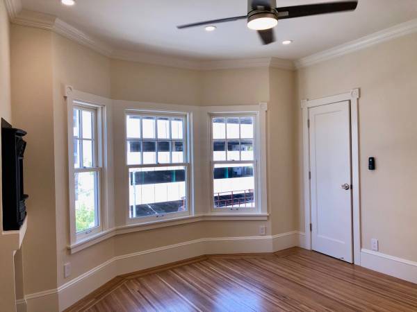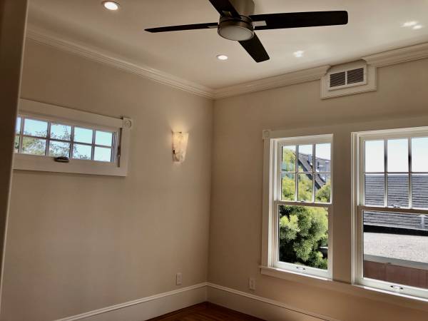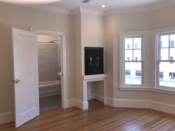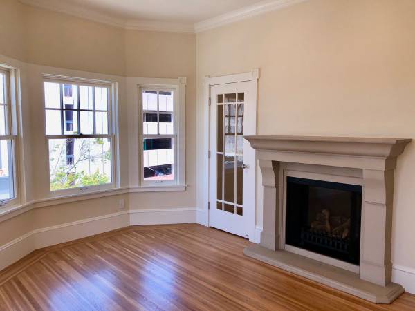 5295. Jordan Park. Elegant, large 4 room top floor apartment with nice views. This apartment has very recently been renovated top to bottom, with luxury in every detail. There are hardwood floors throughout, as well as double-pane tilt-in windows, plantation shutters, custom crown mouldings, and lovely area rugs. The large living room has a gas fireplace, bay windows on two sides, ceiling fan with lights, as well as additional recessed lighting with dimmers. One bedroom has its own gas fireplace, bay windows, ceiling fan with light, as well as alabaster sconces. The second bedroom has a large bay window, alabaster sconces, and a beautiful custom coffered ceiling with indirect lighting. French doors separate this room from the living room. The gourmet eat-in kitchen has top of the line stainless appliances, gas stove dishwasher, cherry cabinets, under-cabinet lighting, a beautiful black silgranite sink, and striking granite slab countertops and backsplashes on both the sink and stove sides of the kitchen. This kitchen is laid out in an open cafe style, perfect for entertaining. There is also a pantry in the kitchen. The bathroom is fabulous. It includes a marble enclosure for the tub and shower. The bathroom also features faux paint, travertine floor, a Robern medicine cabinet and mirror, and a large window. The apartment has generous closet space throughout, and one exceptional walk-in. There is laundry in the building, and parking is extra. Clean, efficient heat, beautiful lighting, and fine touches everywhere make this an elegant living space. Although this apartment is at the corner of Jordan and California, it’s surprisingly quiet due to the features we’ve built in to offset outside noise. It’s an easy walk to Laurel Village, The Presidio, Clement Street, and GG Park, and transportation is at California or Geary. Near the GG Bridge, also. No animals or smokers. There is much more to see. Please CALL or TEXT ONLY. David at show contact info