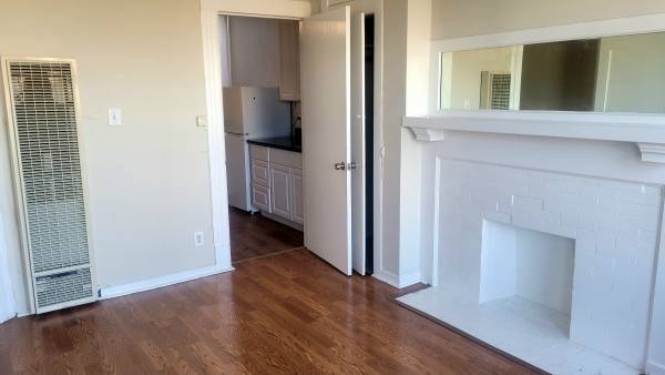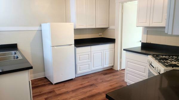 The apartment is on the 3rd floor of a 3-story building on the back side away from traffic. The main living space is a large room with hardwood floors, big windows and views of downtown hi-rises. The kitchen was renovated about 2 years ago and has modern cabinets, a refrigerator and a full-size gas range. We just had the clawfoot bathtub resurfaced this week the other bathroom fixtures were replaced 2 years ago.