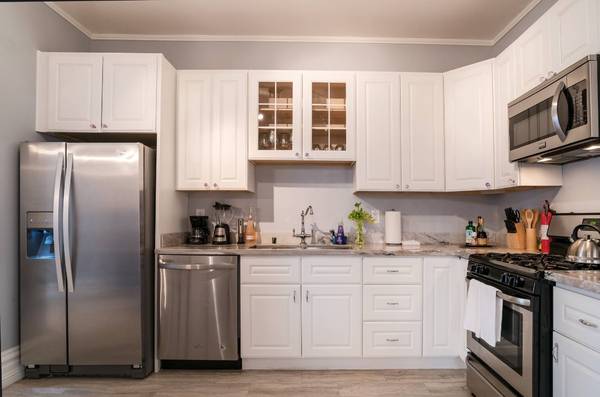 The apartment features gorgeous purple granite countertops, beautiful wood floors, an in-suite washer & dryer, dishwasher. Stainless Steel appliances.