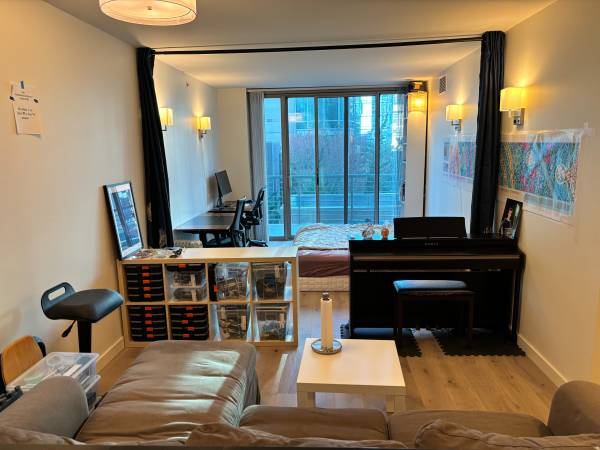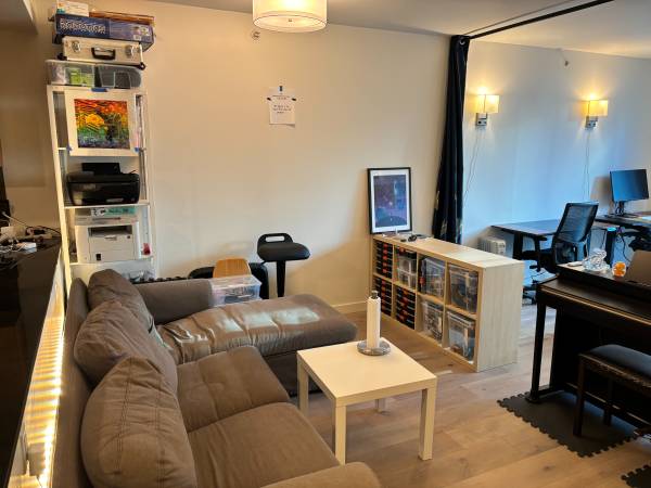 * Living room has queen-size murphy bed and another 2 standing desks. Can be set up with dividing curtain, so you have a shared area and another semi-bedroom (shown in the photos).