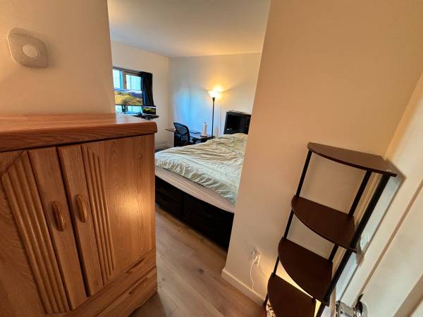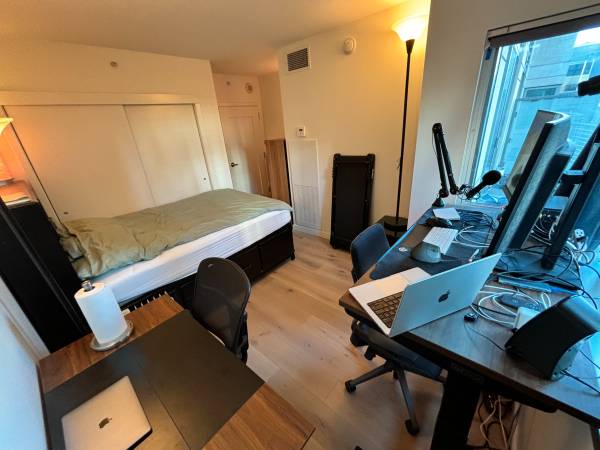 * Bedroom has full-size bed and 1 standing desk.