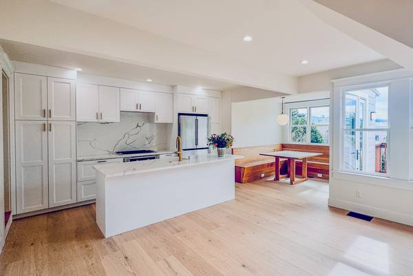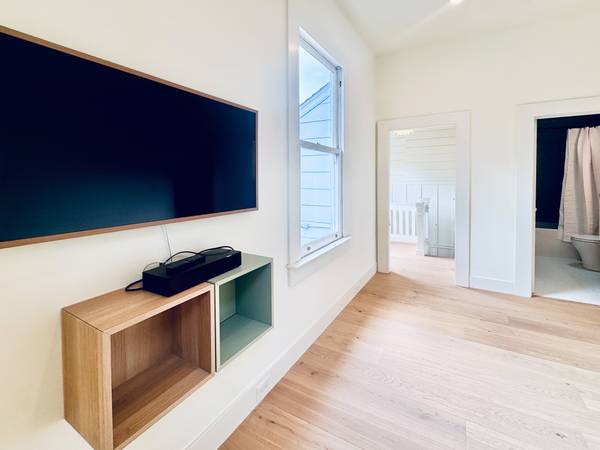 Step back in time to a vintage San Francisco cottage at 11 Surrey St. Built in 1910, the home often draws admiring looks from passersby. A hallway at entrance level, behind the burnt-orange door, leads to bedrooms (one with custom craftsman bunkbed), living space and newly renovated master bathroom, with a skylight.