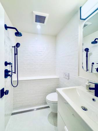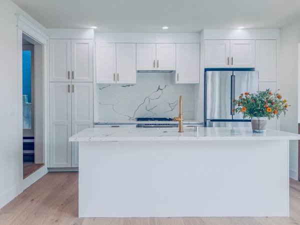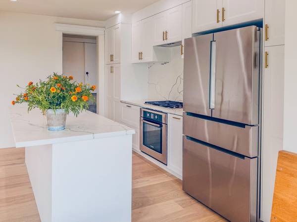 The lower level is an open living space with more custom carpentry and a newly renovated kitchen. There is also a second bathroom, spacious laundry area and bespoke built-in lockers that fully resolve storage.