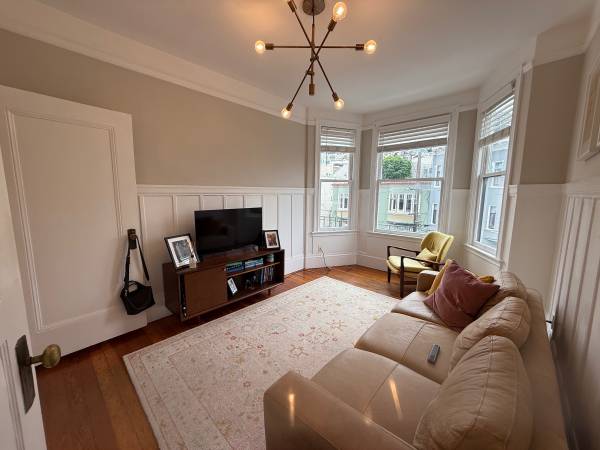 This is sunny new remodeled TOP FLOOR one bedroom in the North Beach Russian Hill area, Beautiful new lights fixtures, new painting tall ceilings.