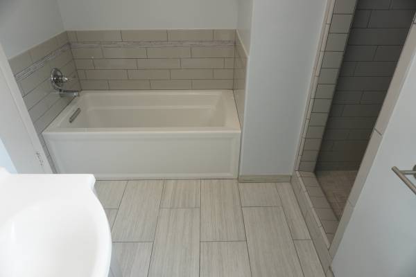 •Full bathroom has been remodeled with new tile and fixtures and includes a full size tub and shower stall.