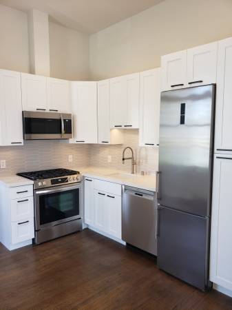 Completely renovated contemporary condo-like sunny 1-bedroom apartment on Sanchez Slow Street in Noe Valley. Designer kitchen with stone countertops and stainless-steel finishes. Includes gas stove, refrigerator, microwave, dishwasher and deep Blanco sink making cooking at home a pleasure. Large bright Victorian unit with hardwood floors, 11-foot ceilings, recessed lights, decorator bathroom finishes including floor to ceiling tiled glass shower, in-unit laundry, move-in ready window treatments, coax and cat-6 TV and data wiring, large bedroom closet. Energy efficient appliances and low energy LED lighting. Video entry system, package delivery cabinet, and exterior cameras for security. Locked bike storage room with electrical outlets for e-bike charging. No parking in the building, but ample street parking is available, especially with a residential permit. Unit pre-wired for Sonic Gigabit fiber internet and Comcast Xfinity.