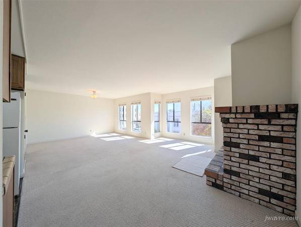 Huge living room/dining area with a fireplace (for dura flame-type logs only).