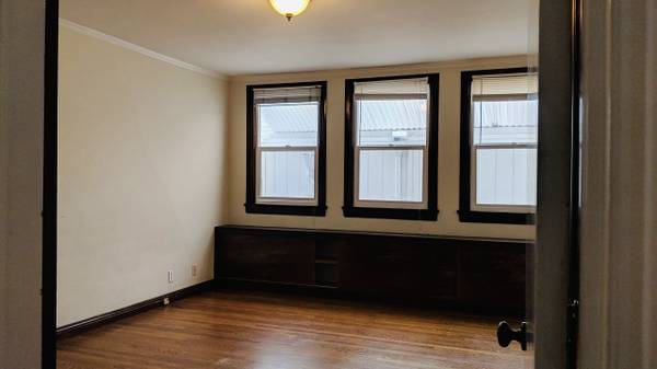The room is spacious. It has lots of natural light. There is a desk and a chair in the room. Washer and dryer are on site, and not coin-operated.