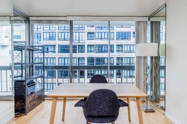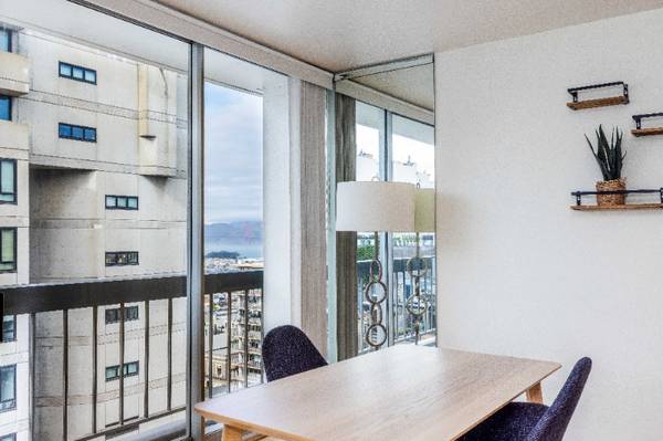 *All utilities included* Welcome to 1998 Broadway #1402, a light-filled and beautifully updated 1BR/1BA home in prime Pacific Heights. Floor-to-ceiling windows and an open layout create an airy, modern living space with exceptional natural light. The living/dining area includes a flexible work-from-home nook with a peek-a-boo Golden Gate Bridge view, plus access to a private balcony. The renovated kitchen features granite countertops, full-height backsplash, white shaker cabinetry, and stainless steel appliances. The spacious bedroom fits a king bed, opens to the balcony, and includes a large custom walk-in closet. The updated bathroom offers a stone-topped vanity and marble-style surround. Located in one of Pacific Heights’ most desirable mid-century buildings, residents enjoy an attended lobby, secure entry, on-site management, and unmatched proximity to Fillmore Street, Union Street, top dining, boutiques, and Lafayette Park. Garage parking and full furnishings included.