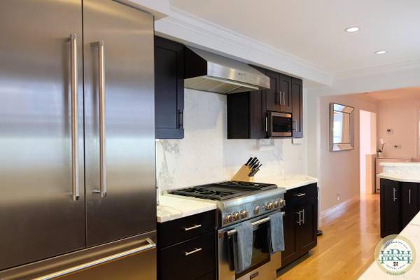 -Professional chef's kitchen with stainless appliances including Thermador range and refrigerator
