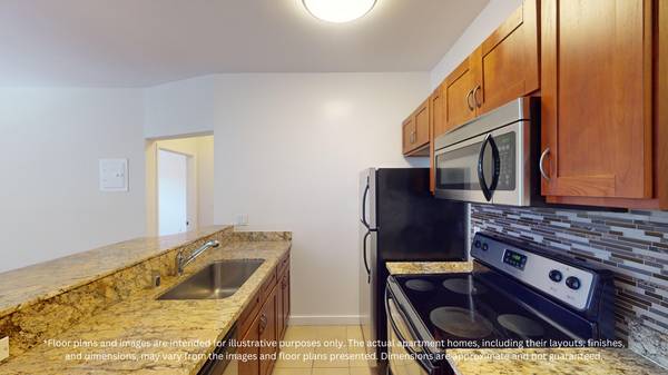 - Kitchen with stainless steel appliances including a dishwasher, refrigerator and stove