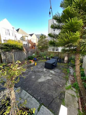Large shared yard with fire pit, tables and outdoor lighting. Can even join building gardening efforts!