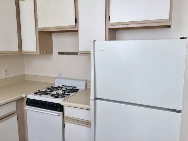 The living area has large windows and plenty of natural daylight. Carpeted throughout. Huge walk-in closet and some space for a small desk. The bathroom features a tub/shower combo.
