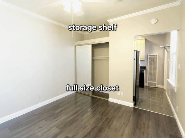 • 1 bedroom studio space, kitchen with tall cabinets, granite counters, plus dishwasher