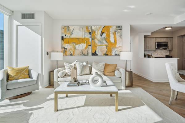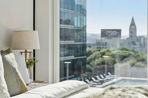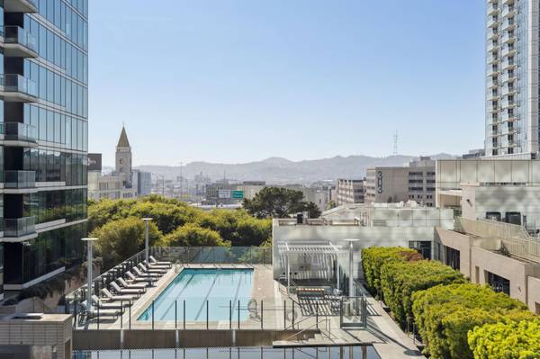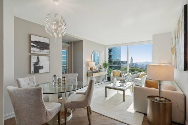 Welcome to this bright and spacious corner residence at The Harrison, offering resort-like living with scenic views of the building's pool and green areas, Twin Peaks, and Sutro Tower from every window, and the expansive private balcony. The open layout features a spacious living area, a gourmet kitchen with stainless steel appliances, Waterworks brass fixtures, and Carrara marble countertops, complemented by elegant hardwood floors throughout.
