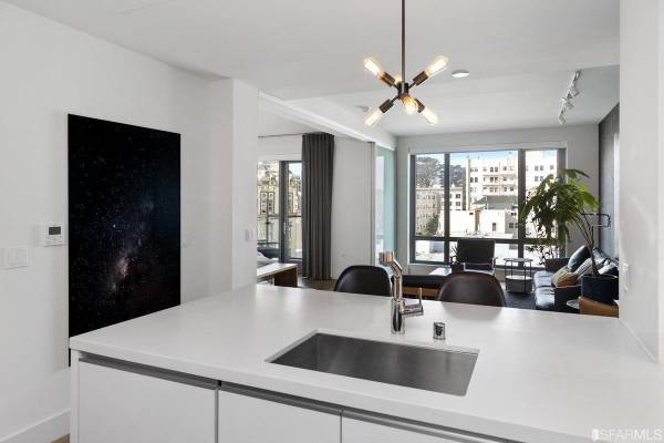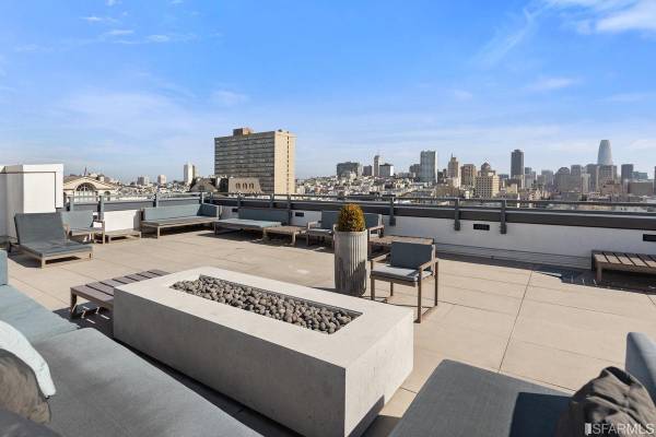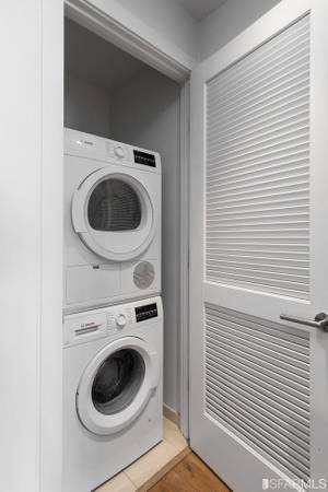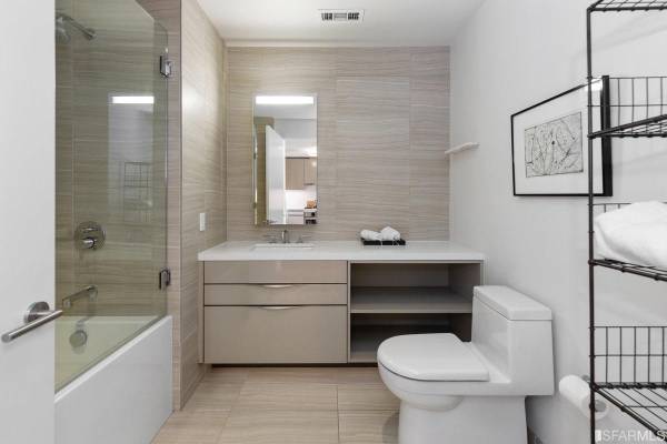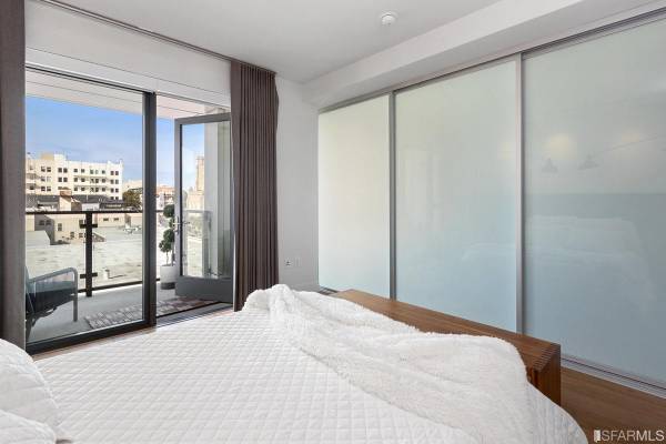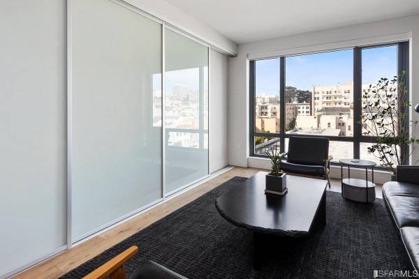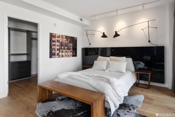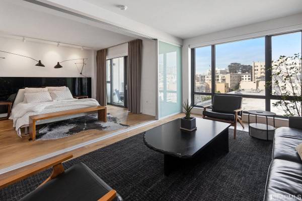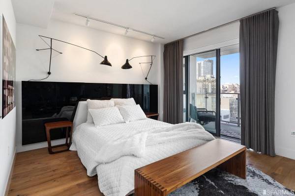 Exceptional residence at the sophisticated 1450 Franklin Street high-rise. fully furnished! Smartly designed condo features a fully furnished condo, south facing patio with city views, expansive custom storage walk-in-closet, high floor-to-ceiling windows with motorized blinds & wide French oak floors throughout the 699 square feet of living space. The modern kitchen is equipped with Bosche appliances, Bosch 5-burner gas cooktop, panelized built-in refrigerator, & Studio Becker high gloss cabinetry. The spa bathroom features porcelain tile, Hansgrohe fixtures, a frameless glass shower door & ample storage. Unit amenities include washer/dryer and central heat/air. 1450 Franklin offers a scenic rooftop deck with 360-degree views of the City & Bay, a porte-cochere arrival, attended lobby, deeded private storage space,1 deeded parking space and bicycle parking. Steps from Lafayette Park, Whole Foods, Klatch Coffee, Muni & Tech Bus's & Fillmore shops.