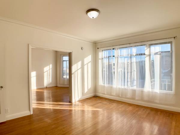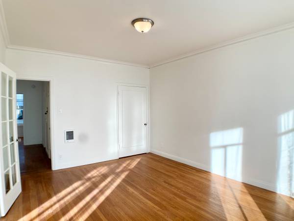 Fully remodeled and SPACIOUS top floor 1BR/1BA with VERY large walk-in closets. Garage parking is available and laundry is on-site. This unit features hardwood floors throughout, high ceilings, and sun-soaked bay windows. The renovated eat-in kitchen boasts a brand new stainless appliance package (dishwasher!), ample counter/cabinet space, and a tiled backsplash. The bathroom is sleek and modern. Lovely home in a wonderful neighborhood.