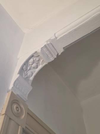 The moment you enter, you'll be captivated by the intricate details that define this home. High ceilings soar overhead, enhancing the sense of space, while the elegant arched and embellished entryways invite you from room to room. Natural light pours in through a magnificent Tiffany-style skylight, casting a warm, colorful glow. The walls are beautifully beveled, adding a touch of unique character that you won't find in modern construction.