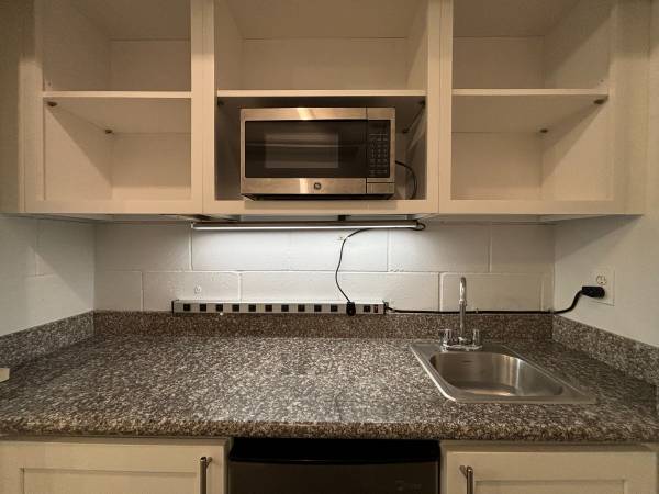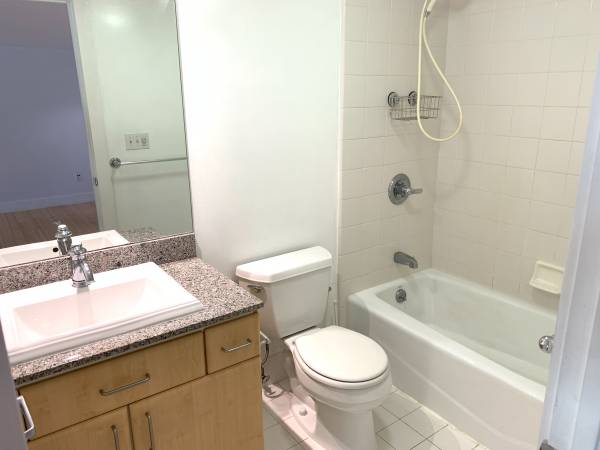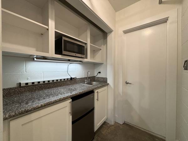 The main floor opens up to a large open area with 15-foot high ceilings and light filled windows facing North-East for an abundance of morning sun. There is a fully-equipped kitchen with full sized refrigerator and gas stove. Mezzanine level bedroom feature a full bathroom and glass enclosure and glass door for added privacy and comfort. Convenient storage closets can be found on each floor. Concrete flooring on main floors and bamboo flooring at mezzanine bedroom.