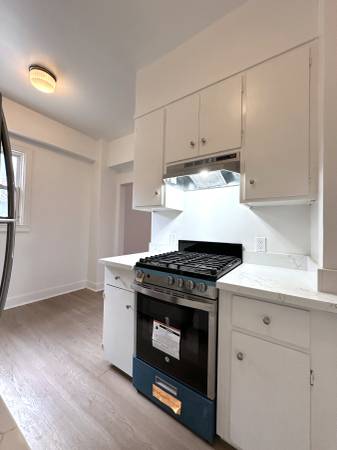 The newly renovated kitchen offers Shaker style cabinets, stone countertops, stainless appliances and space for a breakfast table under the window or even a home office!