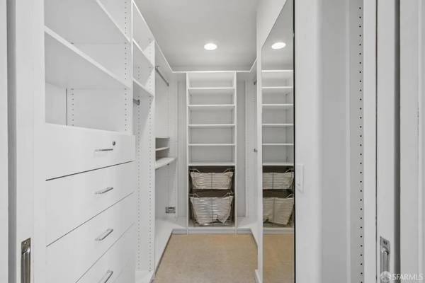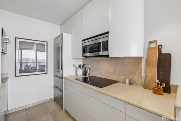 A wall of floor-to-ceiling glass frames sweeping, front-row views of Alcatraz, the Bay, and Marin from this sophisticated 1 bedroom, 1 bathroom condominium atop Russian Hill. Spanning 970 sq. ft. (per graphic artist), the residence offers an airy, open floor plan with generous space for living, dining, and a dedicated work/desk area. The updated kitchen is equipped with high-end appliances and opens seamlessly to the main living space, all oriented toward the captivating water vistas. Double sliding doors lead to a protected terrace, offering an exceptional indoor/outdoor experience ideal for year-round enjoyment, including a prime perch for the Blue Angels. The spacious bedroom features full water views, a large walk-in closet with built-ins, and an updated bathroom. Located on a flat block, The Summit is a landmark, full-service luxury high-rise designed by architect Joseph Eichler offering 24-hour security, on-site management, and deeded parking. Moments from the vibrant shops and restaurants of Russian Hill, North Beach, Nob Hill, and Pacific Heights.