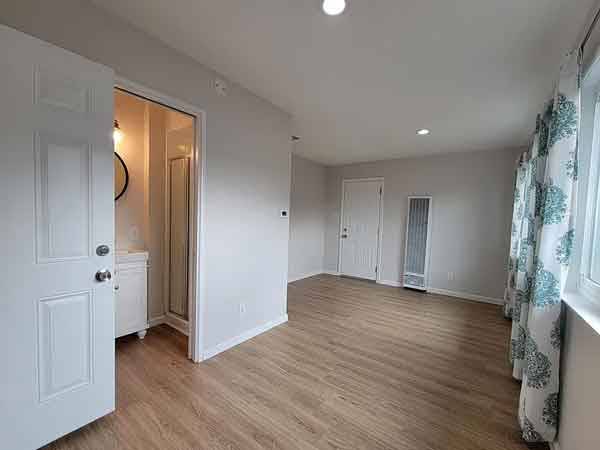 This newly remodeled with a separate bedroom, full bathroom and living room located in San Lorenzo. Living room about: 20.5 x 11 sq. ft. refrigerator, toaster, and microwave provided. Room measures about: 17.5 x 11 sq. ft. Owner covers: high speed internet. Garbage and recycling. Utilities : split electricity and water with front unit. Laundry: in unit. Plenty of street parking. Pets allowed. No smoking.