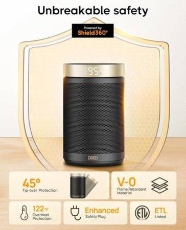 DREO space heater. Temperatures range from 41-95° F. Used, but looks and functions like new. Relatively quiet. 11" tall. Available for pickup in the Mission off of 26th St and Mission St.