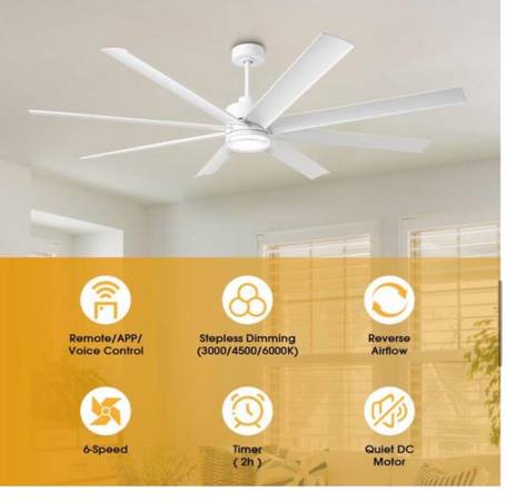 Brand new sealed package Pick up San Francisco 72 in. Indoor Integrated LED White Smart Ceiling Fan with Light and Remote Control, Works with Alexa/Google