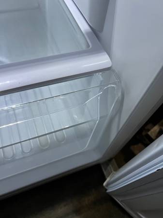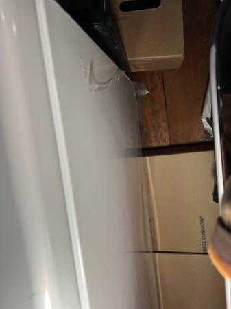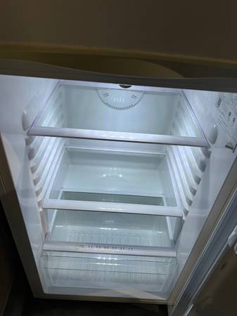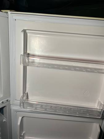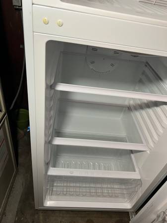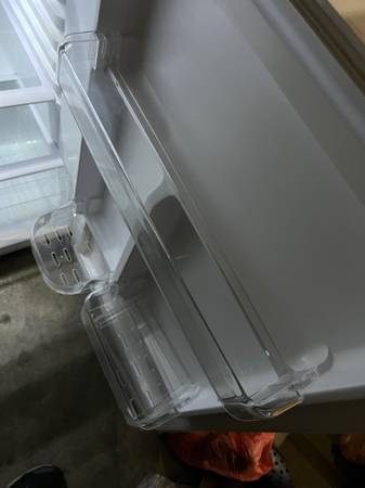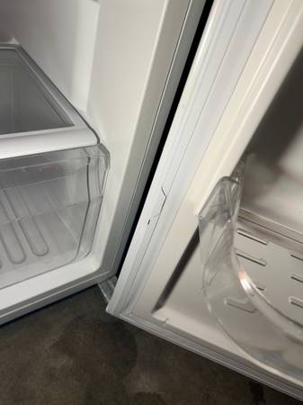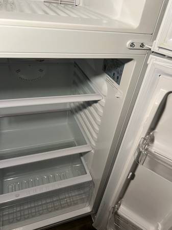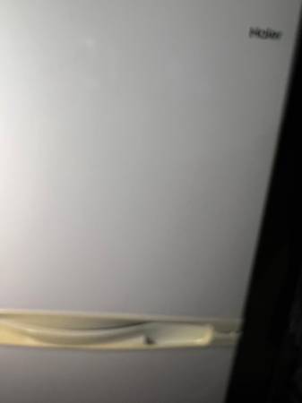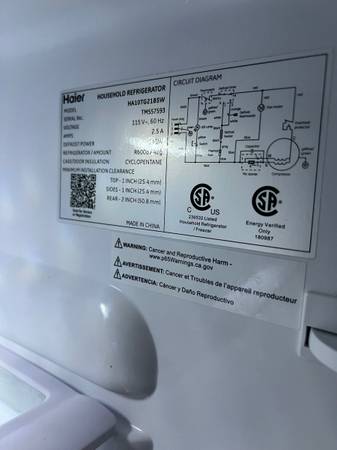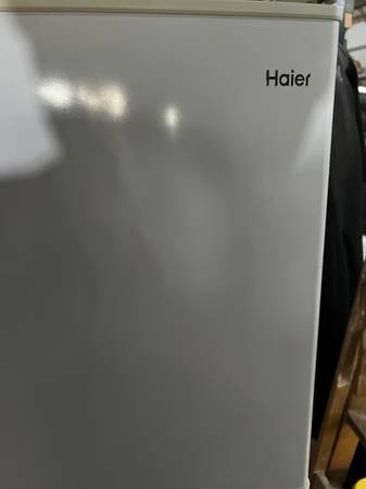 Haier 9.8 cu ft top freezer refrigerator, model HA10TG21SW. Gently used for around 4 years. Purchased brand new from Lowe’s in 02/20/2020 for a corporate unit. Has not been used for 1 year or so. Great for condo, 1-bedroom apartment or up to 2 people. It's in good condition, and I have checked to make sure the fridge work. It has 1 small surface cut in the seal, bottom storage plastic chip on the handle and cosmetic ding marks from moving the fridge downstairs to the garage (pics shown). Currently at Lowe's for $611. Can deliver for extra fee within reasonable distance.