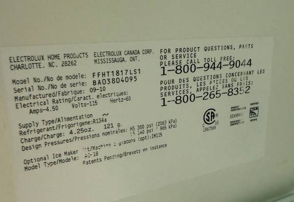 Frigidaire Refrigerator Stainless Steel, 2-Door, 18 Cu Ft Mod #FFHT1817LS1 Fully functional/a little Noisy when running First $190.00 gets it! Bring a friend/Bring a truck Great for a garage Mark