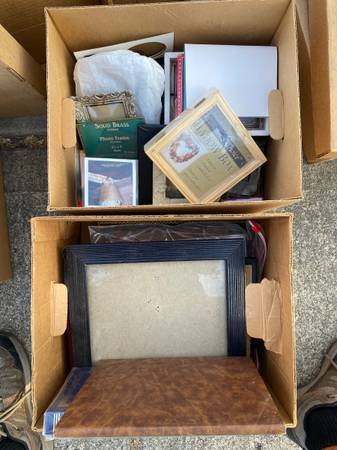 9 boxes of lamps picture frames glassware wood crafts candles and holders.make an offer on any or all. alot more arts and crafts. $20 for the whole thing
