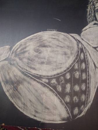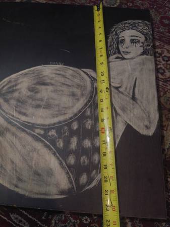 Preowned in good condition! One of a kind art featuring a woman with big onion bootie, mixed media on plywood, size is 22 1/2"×21 3/4" See pictures for reference! Pick up in San Francisco!