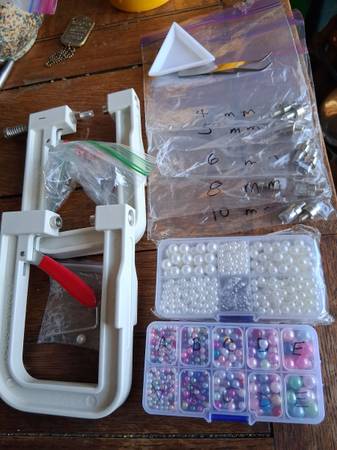 2 Pearl setting tools for crafts,2 of each size setting clamps,pearls,tweezers.Everything pictured is included.Only sold together,cash only,pickup near sf zoo.$15.00 firm.