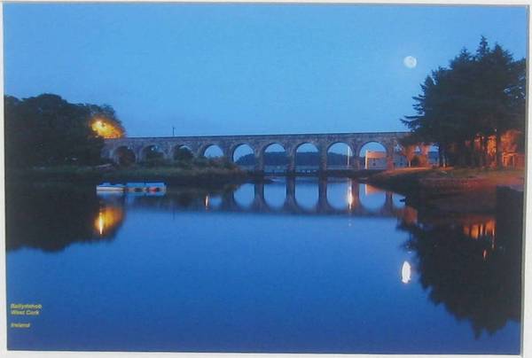 "The engineers that planned and laid out the Skibbereen to Schull Railway, which operated from 1886 to 1947, have left behind an iconic twelve-arch railway bridge at Ballydehob. It is quite a beautiful edifice and can be accessed by the public as part of a healthy and refreshing walk along the salty coast of West Cork. On a calm evening with a high tide and with the added luck of a full moon in the background, the bridge exudes a captivating charm."