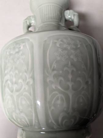 Hi. On sale here is my Chinese Signed Longquan Celadon Glaze Porcelain Balaustro Vase. In like new condition. This item is rare and is a highly prized collectible item from the 1960s. This awesome glazed vase looks beautiful, elegant and pleasant to the eyes. I'm sure you will be happy with its jade-like overall quality. This luxurious vase features elephant handles with floral designs all around. The bottom is signed. Dimensions: 9" x 12 1/4" H. The opening is 4"D. Don't miss out on this rare item. If you like more pictures let me know. Selling now for $2000. Cash only