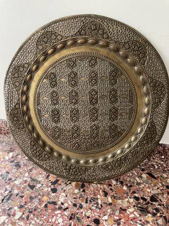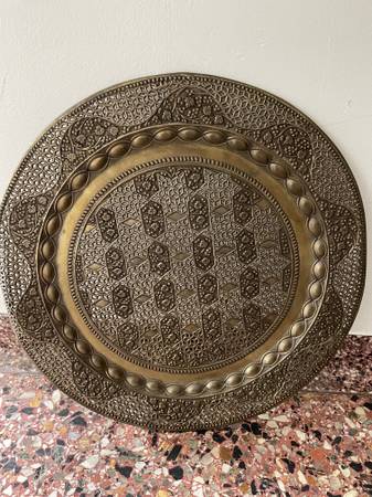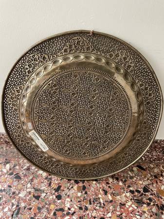 I am selling 24 inch Large plate with hook hand made in india-Gorgeous decor. Original price $200.00. Color gold. If you are interested, please text me at show contact info