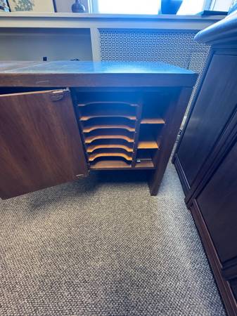Older Solid Walnut Desk. Very utilitarian. Strip down and stain and it would very attractive.