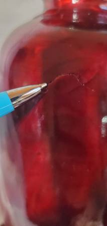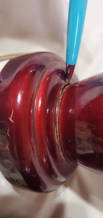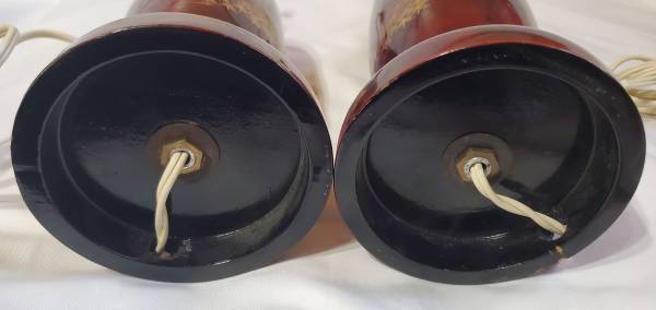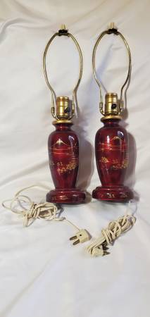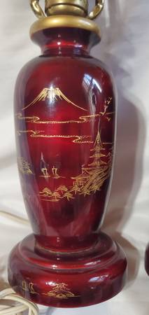 Selling a pair of Vintage Japanese Red Table Lamps. One has a small crack, please see pictures