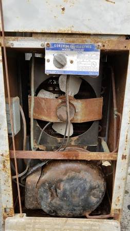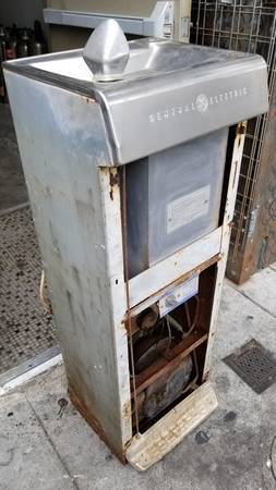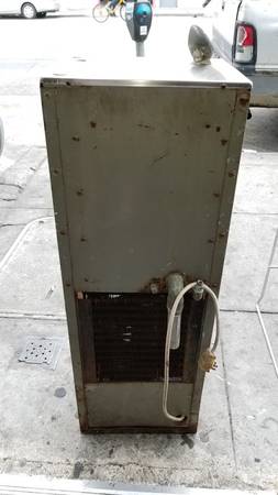 working and functional, but missing its front face plate. needs cleanup and restoration, + fabrication of a custom front plate as creative as you want to make it... or operable without one. turn it into a vodka fountain! included are pictures of one in restored condition for reference. no cell = no reply