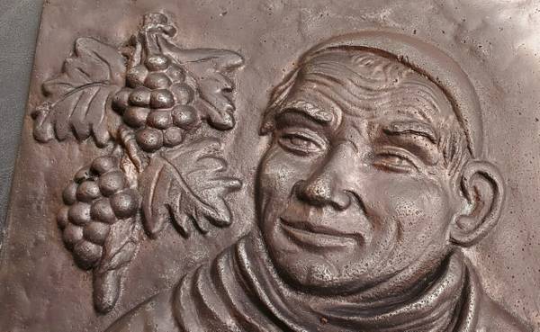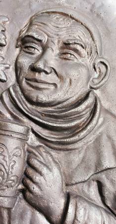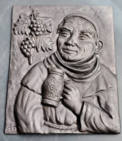 Cast iron plaque cast in relief This monk is a winemaker-- he loves his grapes! Just look at his wry smile great decoration for a wine cellar or bar 9" by 12" no trolls, please $85--cash only,...